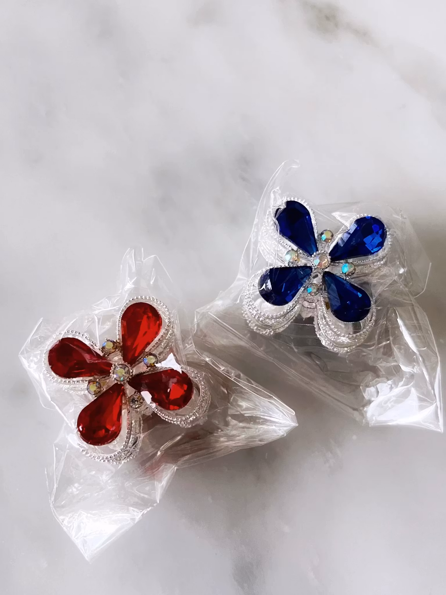 2-pack fancy metall-pärlor-blå-röd