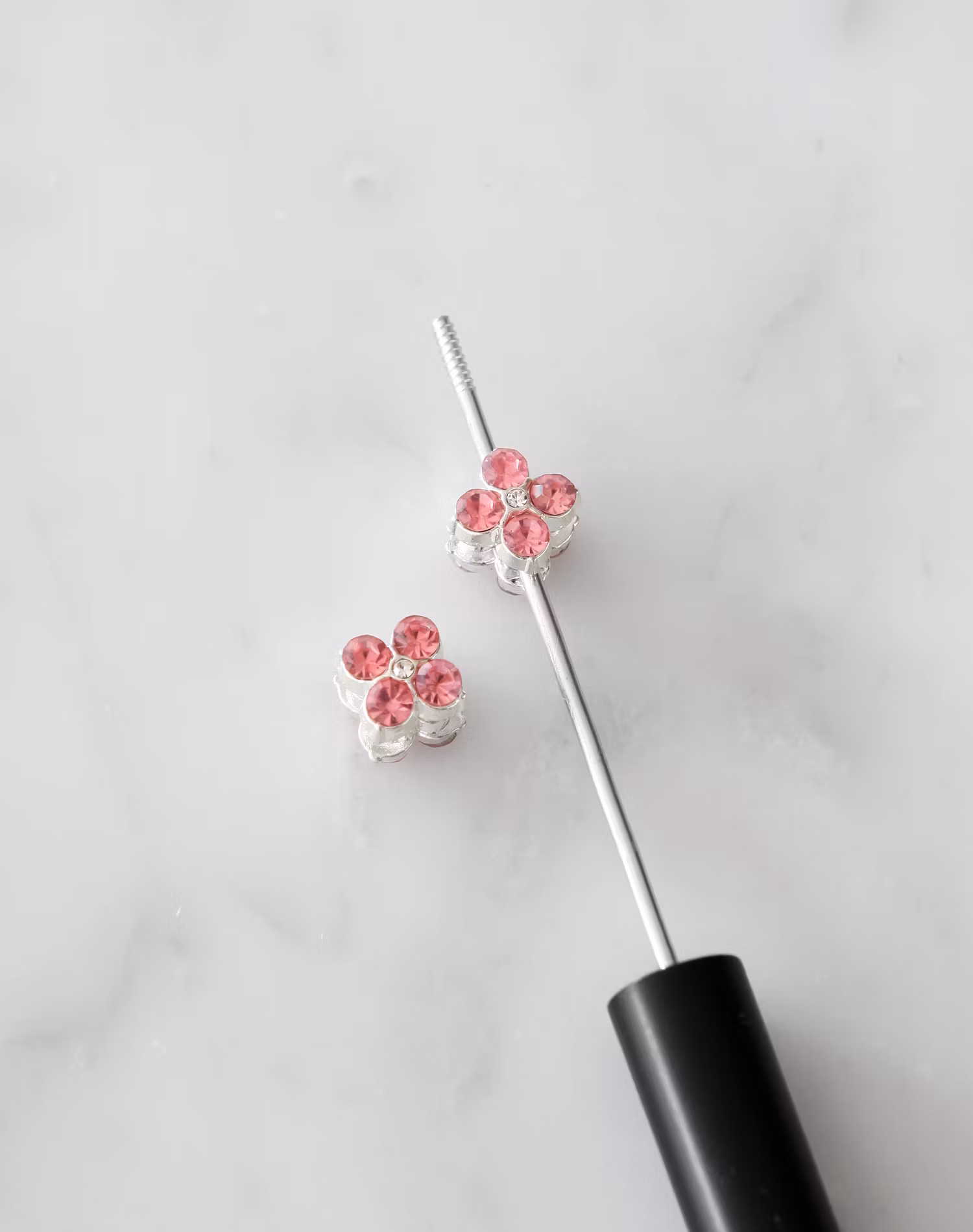 2-pack metallpärlor, blomma silver/rosa, passar pärlpenna m.m.