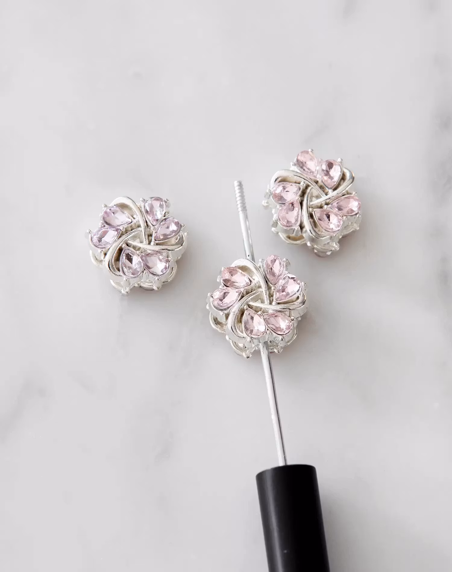3-pack metallpärlor, blomma silver, ljuslila och rosa, passar pärlpenna.